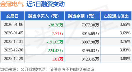 证券之星消息,1月6日,金冠电气(688517)融资买入564.34万元,融资偿还602.72万元,融资净卖出38.38万元,融资余额7977.3万元。