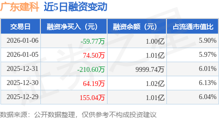 证券之星消息,1月6日,广东建科(301632)融资买入412.56万元,融资偿还472.33万元,融资净卖出59.77万元,融资余额1.0亿元。