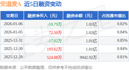证券之星消息,1月6日,安道麦A(000553)融资买入581.18万元,融资偿还640.97万元,融资净卖出59.79万元,融资余额1.01亿元。