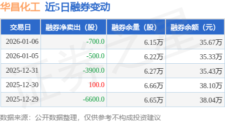证券之星消息,1月6日,华昌化工(002274)融资买入538.44万元,融资偿还667.64万元,融资净卖出129.2万元,融资余额3.1亿元,近20个交易日中有11个交易日出现融资净买入。
