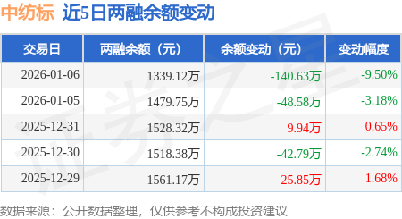 证券之星消息,1月6日,中纺标(920122)融资买入69.3万元,融资偿还209.93万元,融资净卖出140.63万元,融资余额1339.12万元。