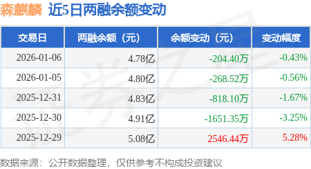证券之星消息,1月6日,森麒麟(002984)融资买入3422.44万元,融资偿还3680.19万元,融资净卖出257.75万元,融资余额4.73亿元。