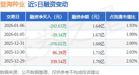 证券之星消息,1月6日,登海种业(002041)融资买入1058.25万元,融资偿还1350.88万元,融资净卖出292.63万元,融资余额1.64亿元。
