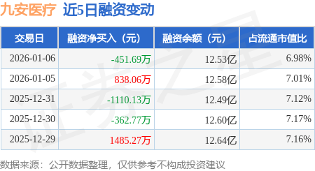 证券之星消息,1月6日,九安医疗(002432)融资买入4683.7万元,融资偿还5135.4万元,融资净卖出451.69万元,融资余额12.53亿元,近20个交易日中有12个交易日出现融资净买入。