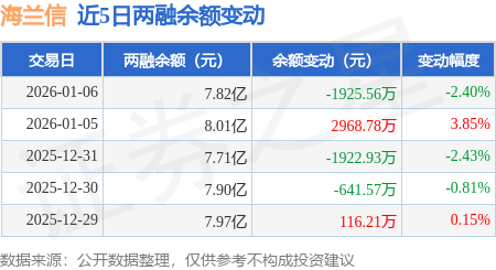 证券之星消息,1月6日,海兰信(300065)融资买入8328.62万元,融资偿还1.02亿元,融资净卖出1842.06万元,融资余额7.81亿元。