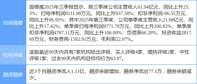 今日固德威(688390)涨8.19%,收盘报76.65元。