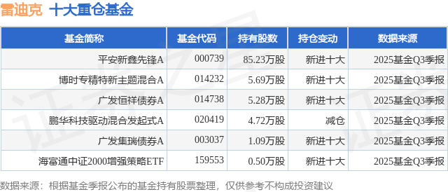 重仓雷迪克的公募基金请见下表: