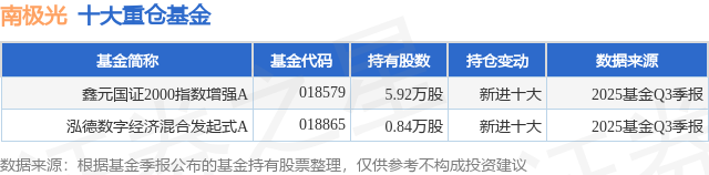 重仓南极光的公募基金请见下表: