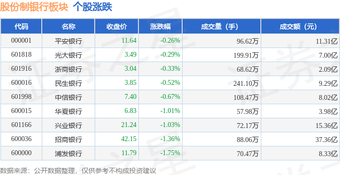 从资金流向上来看,当日股份制银行板块主力资金净流出4057.13万元,游资资金净流出8334.4万元,散户资金净流入1.24亿元。股份制银行板块个股资金流向见下表: