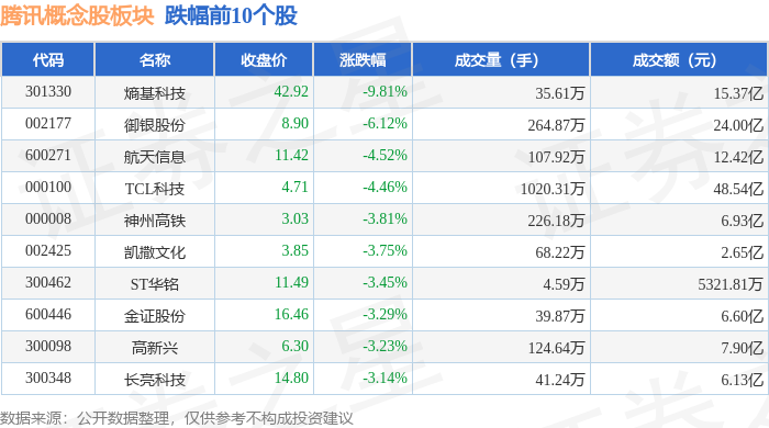 从资金流向上来看,当日腾讯概念股板块主力资金净流出16.37亿元,游资资金净流入3.37亿元,散户资金净流入13.01亿元。腾讯概念股板块个股资金流向见下表: