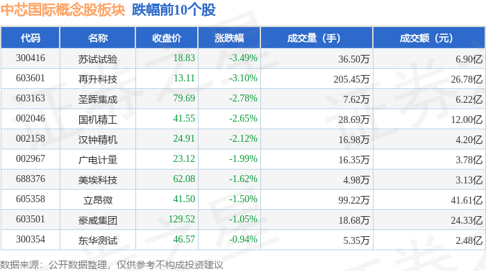 从资金流向上来看,当日中芯国际概念股板块主力资金净流入7.9亿元,游资资金净流出23.24亿元,散户资金净流入15.34亿元。中芯国际概念股板块个股资金流向见下表:
