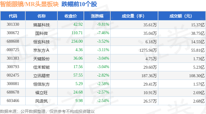 从资金流向上来看,当日智能眼镜/MR头显板块主力资金净流出74.27亿元,游资资金净流入22.98亿元,散户资金净流入51.29亿元。智能眼镜/MR头显板块个股资金流向见下表: