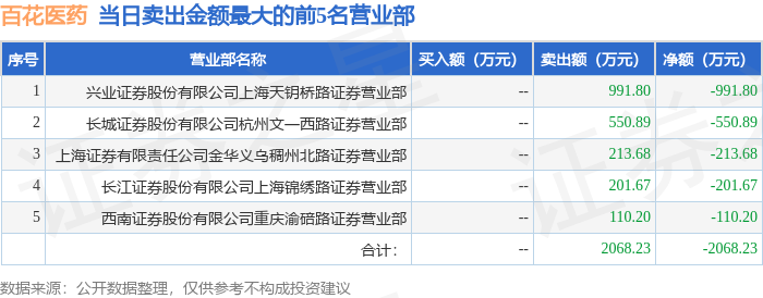 证券之星消息,沪深交易所2026年1月7日公布的交易公开信息显示,百花医药(600721)因有价格涨跌幅限制的日收盘价格跌幅偏离值达到7%的前五只证券登上龙虎榜。此次是近5个交易日内第1次上榜。