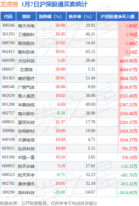 龙虎榜中有沪股通/深股通专用席位(北向资金)现身的个股共28家,其中南大光电以净买入1.86亿元排名第一。详情见下表: