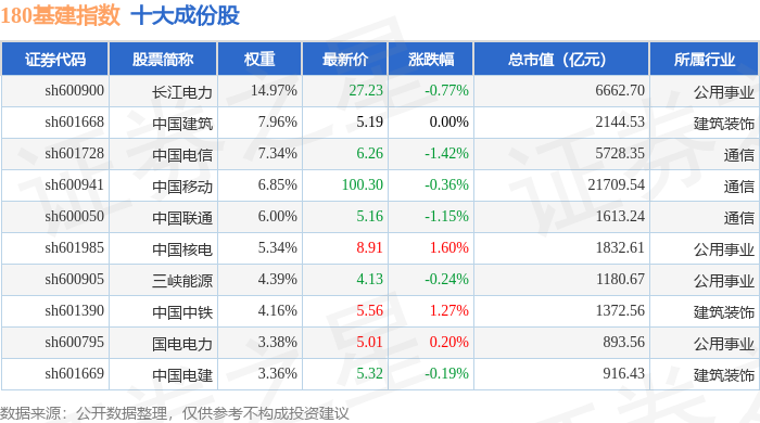 资金流向方面,180基建(000025)指数成份股当日主力资金净流出合计18.25亿元,游资资金净流入合计4.8亿元,散户资金净流入合计13.45亿元。成份股资金流向详情见下表:
