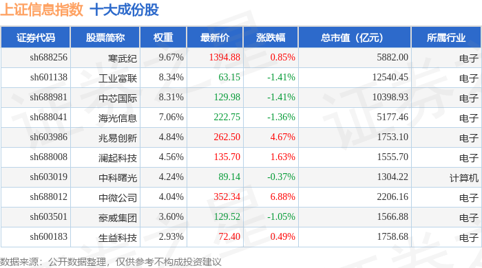 上证信息(000039)指数十大成份股详情如下: