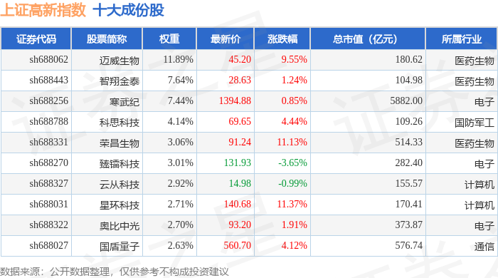 证券之星消息,1月7日,上证高新(000131)指数报收于3878.91点,涨2.33%,成交525.53亿元,换手率2.67%。当日该指数成份股中,上涨的有28家,星环科技以11.37%的涨幅领涨,下跌的有22家,盛科通信以7.53%的跌幅领跌。