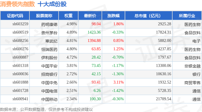证券之星消息,1月7日,消费领先(000148)指数报收于9752.9点,涨0.03%,成交1434.61亿元,换手率0.43%。当日该指数成份股中,上涨的有35家,荣昌生物以11.13%的涨幅领涨,下跌的有65家,中科星图以6.05%的跌幅领跌。