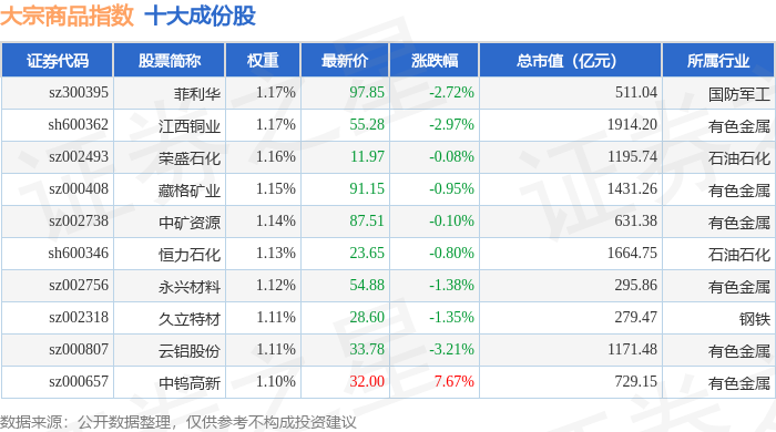 资金流向方面,大宗商品(000979)指数成份股当日主力资金净流出合计27.34亿元,游资资金净流入合计7.28亿元,散户资金净流入合计20.06亿元。成份股资金流向详情见下表: