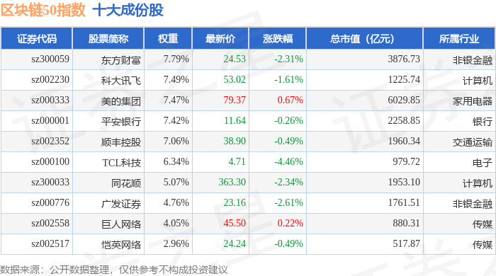 证券之星消息,1月7日,区块链50(399286)指数报收于4204.25点,跌1.06%,成交854.59亿元,换手率4.78%。当日该指数成份股中,上涨的有10家,岩山科技以10.02%的涨幅领涨,下跌的有39家,赢时胜以7.45%的跌幅领跌。