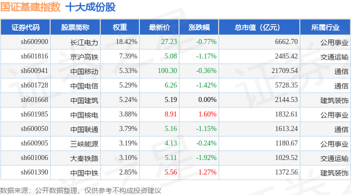 国证基建(399359)指数十大成份股详情如下: