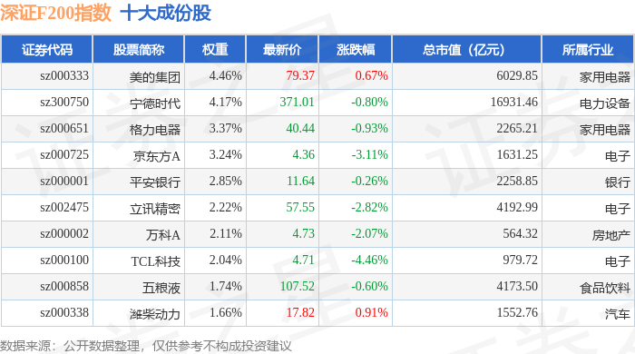 资金流向方面,深证F200(399703)指数成份股当日主力资金净流出合计144.22亿元,游资资金净流入合计17.41亿元,散户资金净流入合计126.81亿元。成份股资金流向详情见下表: