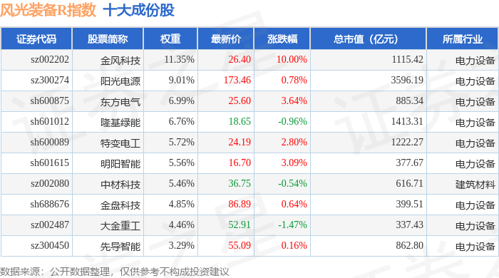 风光装备R(480026)指数十大成份股详情如下: