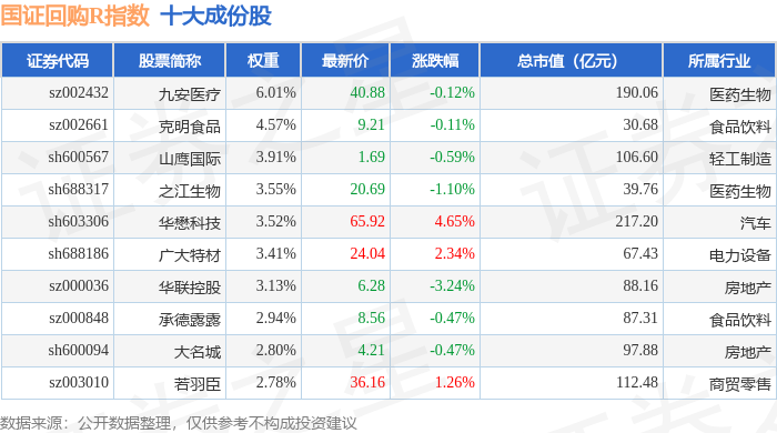 国证回购R(480063)指数十大成份股详情如下: