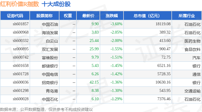 红利价值R(489016)指数十大成份股详情如下: