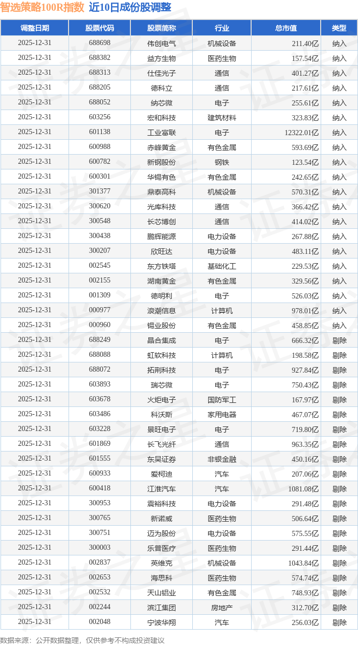 智选策略100R(489015)指数十大成份股详情如下: