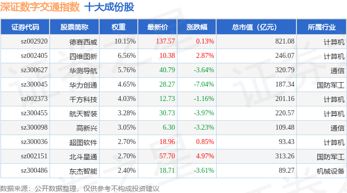 深证数字交通(970049)指数十大成份股详情如下:
