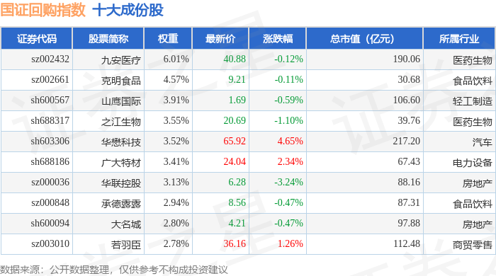 国证回购(980063)指数十大成份股详情如下: