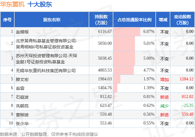 根据华东重机2025年三季报公布的十大股东详情如下: