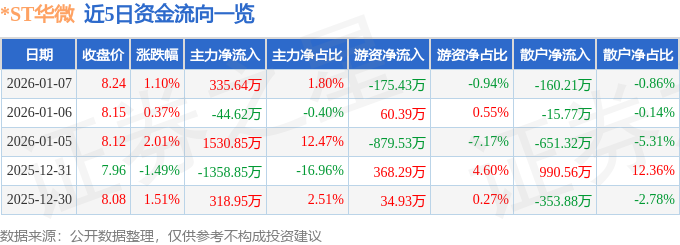 证券之星消息,截至2026年1月7日收盘,*ST华微(600360)报收于8.24元,上涨1.1%,换手率2.35%,成交量22.55万手,成交额1.86亿元。
