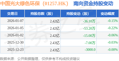 证券之星消息,1月7日南向资金减持36.1万股中国光大绿色环保(01257.HK)。近5个交易日中,获南向资金减持的有5天,累计净减持111.6万股。近20个交易日中,获南向资金减持的有20天,累计净减持369.3万股。截至目前,南向资金持有中国光大绿色环保(01257.HK)2.42亿股,占公司已发行普通股的11.69%。