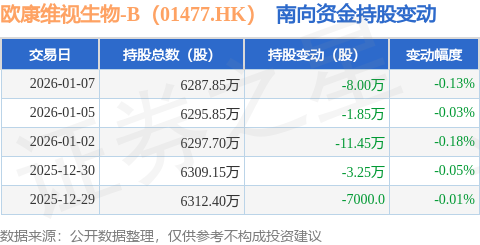 证券之星消息,1月7日南向资金减持8.0万股欧康维视生物-B(01477.HK)。近5个交易日中,获南向资金减持的有5天,累计净减持25.25万股。近20个交易日中,获南向资金减持的有20天,累计净减持121.0万股。截至目前,南向资金持有欧康维视生物-B(01477.HK)6287.85万股,占公司已发行普通股的7.51%。