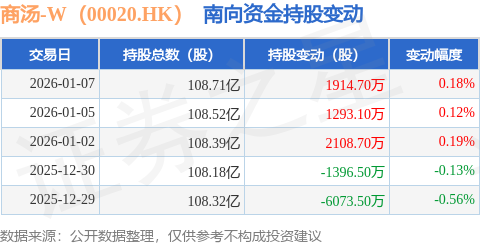 证券之星消息,1月7日南向资金增持1914.7万股商汤-W(00020.HK)。近5个交易日中,获南向资金减持的有2天,累计净减持2153.5万股。近20个交易日中,获南向资金增持的有15天,累计净增持6.96亿股。截至目前,南向资金持有商汤-W(00020.HK)108.71亿股,占公司已发行普通股的26.88%。