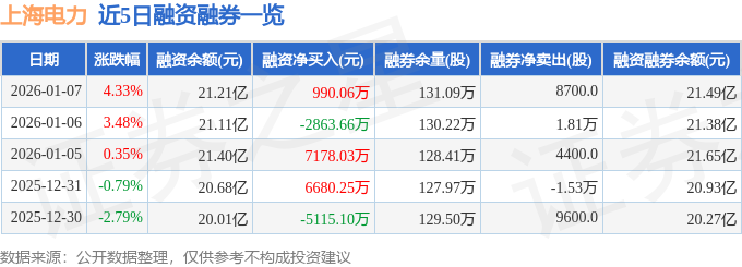 上海电力融资融券信息显示,融资方面,当日融资买入3.29亿元,融资偿还3.19亿元,融资净买入990.06万元。融券方面,融券卖出1.8万股,融券偿还9300.0股,融券余量131.09万股,融券余额2843.34万元。融资融券余额21.49亿元。