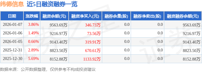 纬德信息融资融券信息显示,融资方面,当日融资买入1569.0万元,融资偿还1222.28万元,融资净买入346.73万元,连续3日净买入累计740.2万元。融券方面,融券卖出0.0股,融券偿还0.0股,融券余量0.0股,融券余额0.0万元。融资融券余额9563.69万元。