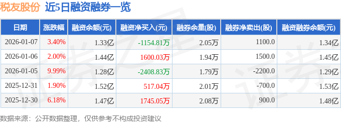 证券之星消息,截至2026年1月7日收盘,税友股份(603171)报收于63.95元,上涨3.4%,换手率2.04%,成交量8.3万手,成交额5.23亿元。
