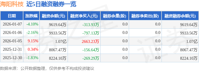 海阳科技融资融券信息显示,融资方面,当日融资买入3581.86万元,融资偿还3895.79万元,融资净偿还313.93万元。融券方面,融券卖出0.0股,融券偿还0.0股,融券余量0.0股,融券余额0.0万元。融资融券余额9619.64万元。