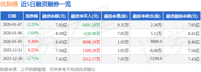 优刻得融资融券信息显示,融资方面,当日融资买入1.47亿元,融资偿还2.04亿元,融资净偿还5695.29万元。融券方面,融券卖出2.46万股,融券偿还1601.0股,融券余量9.35万股,融券余额276.38万元。融资融券余额7.85亿元。