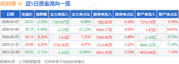 证券之星消息,截至2026年1月7日收盘,优刻得(688158)报收于29.55元,下跌2.25%,换手率9.53%,成交量38.66万手,成交额11.55亿元。
