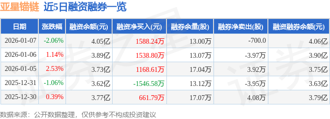 亚星锚链融资融券信息显示,融资方面,当日融资买入5218.77万元,融资偿还3630.53万元,融资净买入1588.24万元,连续3日净买入累计4295.64万元。融券方面,融券卖出300.0股,融券偿还1000.0股,融券余量13.0万股,融券余额135.85万元。融资融券余额4.06亿元。