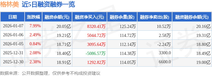 格林美融资融券信息显示,融资方面,当日融资买入7.17亿元,融资偿还6.34亿元,融资净买入8320.41万元,连续3日净买入累计1.65亿元。融券方面,融券卖出21.14万股,融券偿还10.62万股,融券余量125.24万股,融券余额1168.49万元。融资融券余额20.16亿元。
