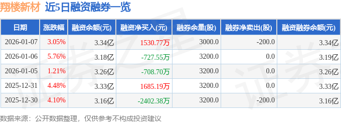 证券之星消息,截至2026年1月7日收盘,翔楼新材(301160)报收于79.3元,上涨3.05%,换手率9.72%,成交量7.04万手,成交额5.52亿元。