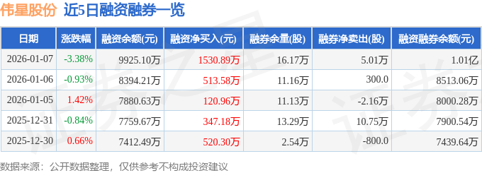 伟星股份融资融券信息显示,融资方面,当日融资买入2078.4万元,融资偿还547.51万元,融资净买入1530.89万元,连续3日净买入累计2165.43万元。融券方面,融券卖出5.01万股,融券偿还0.0股,融券余量16.17万股,融券余额166.39万元。融资融券余额1.01亿元。