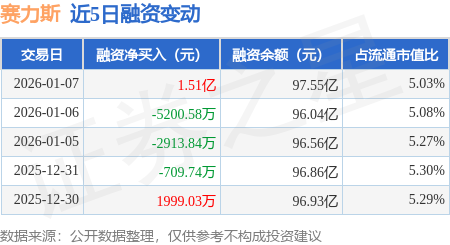 证券之星消息,1月7日,赛力斯(601127)融资买入10.49亿元,融资偿还8.98亿元,融资净买入1.51亿元,融资余额97.55亿元,当日融资净买入排名第43。