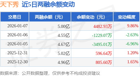 证券之星消息,1月7日,天下秀(600556)融资买入1.65亿元,融资偿还1.2亿元,融资净买入4499.43万元,融资余额4.97亿元。