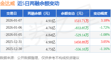 证券之星消息,1月7日,金达威(002626)融资买入4246.58万元,融资偿还2735.69万元,融资净买入1510.9万元,融资余额4.9亿元。